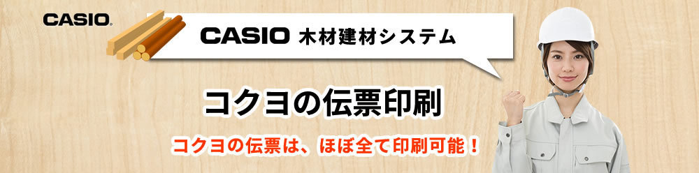 現在、沢山の会社がコクヨの伝票を事務処理で使用しています。見積書、納品書(売上伝票)、請求書(合計請求書や請求明細書)、仕入帳(元帳)、売上帳(元帳)、現金出納帳、領収書など…。とても使い易く、昔から事務作業には欠かせない伝票となっています。コクヨの伝票だけでも、これだけ多くの種類があるので、事務処理には時間と手間が掛かりますが、カシオの木材建材システムは複写伝票でも簡単に印刷できます!