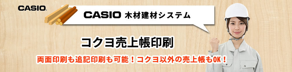 木材建材システムは市販の売上帳も印刷できます。表裏のある市販の売上帳にも印刷ができます。コクヨやヒサゴ、アピカなど市販の売上帳はもちろん、オリジナルの売上帳も全て印字OKです!