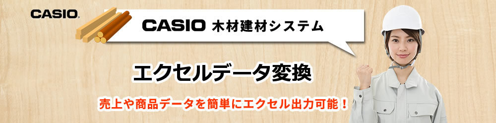 カシオ木材建材システムで入力した得意先・商品の一覧表や取引データそのものを、簡単操作でエクセルに出力できます!これで、二度打ちする手間も省けます。また、データはCSV形式で保存できるので、エクセルで変換した後は、データをFD、CD、USBなどに保存し、分社している営業所、工場や、外出先でも操作が出来ます。もちろん、CSV形式で保存したデータはメールに添付し、送信することが出来るので、送信先でデータを確認、操作することも可能です。これにより、データの使用可能な範囲が広がり、効率的に仕事を進めることが出来ます!