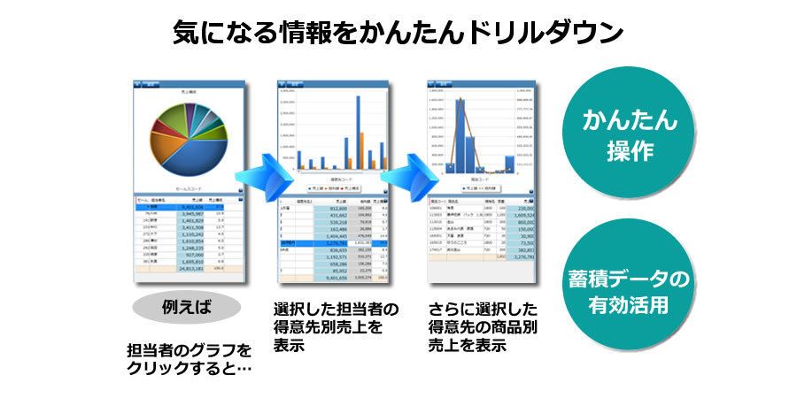 知りたい情報だけをピックアップして、きれいなグラフや表でわかりやすく迅速に表示できます。